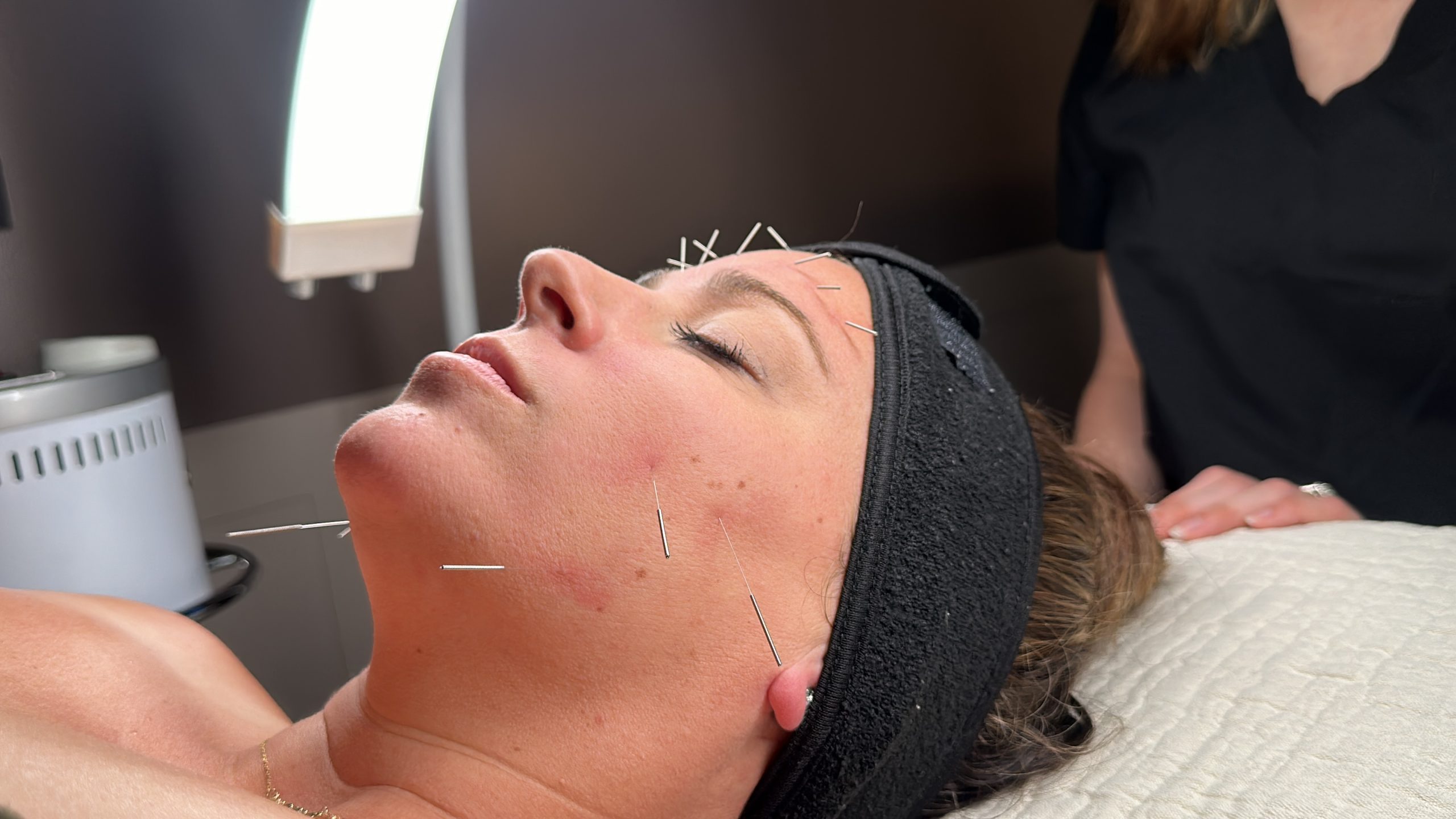 Your acupuncture facial begins with facial gua sha. This is a Traditional Chinese Medicine technique that relaxes your facial muscles, removes puffiness, and promotes lymphatic drainage.